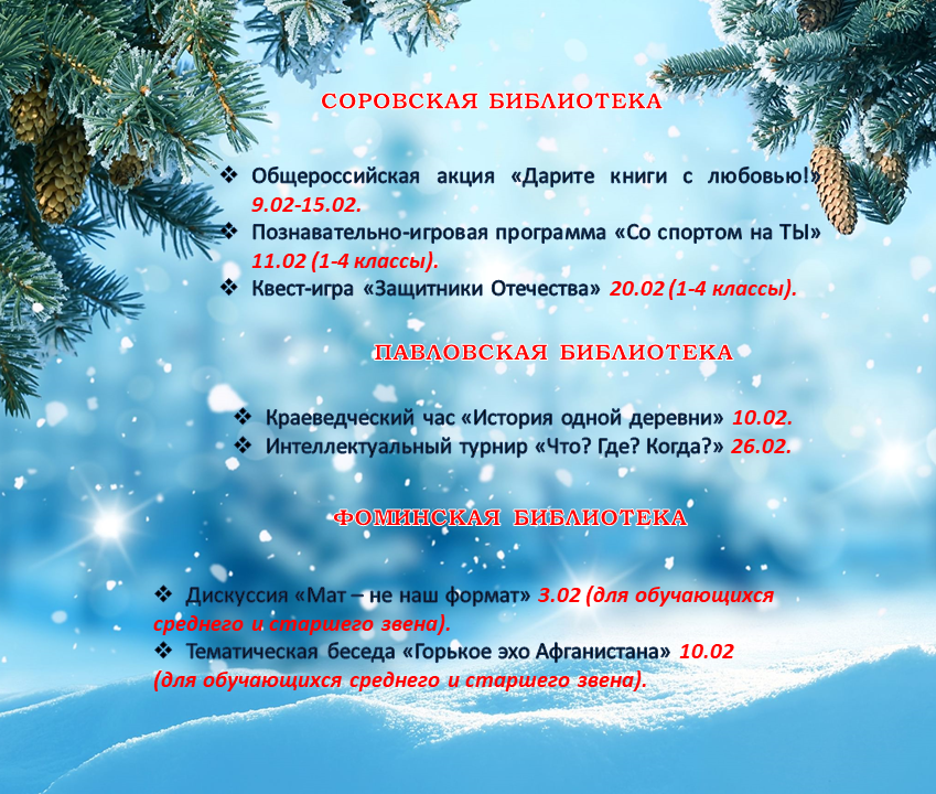 ПЛАН МЕРОПРИЯТИЙ В ФЕВРАЛЕ